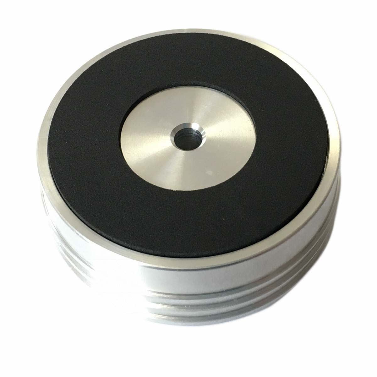 bFly audio Plattengewicht PG0 mit Naturkautschuk-Einlage mit hohem Luftanteil auf der Unterseite. Der Corpus aus poliertem nicht magnetischem Aluminium mit 3 grifffesten Ringen aus Aluminium sorgen hier für einen festen Griff.