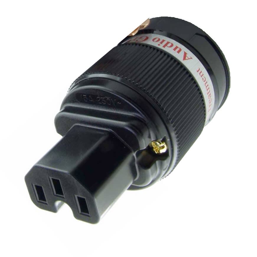 High-end IEC socket made of solid 99.99% oxygen-free Furukawa copper with different platings in gold, silver or raw dium available.