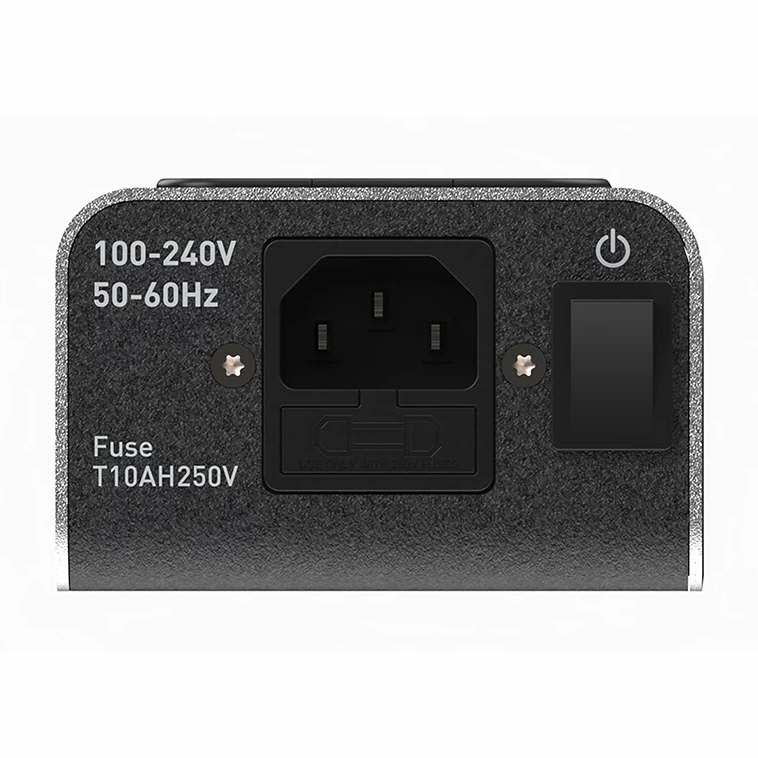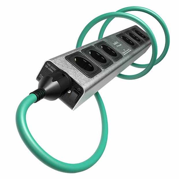 The V5 Polaris is a compact and elegant power cleaning and distribution board with a length of only 510 mm, a width of 80 mm and a height of 50 mm. It has six separately switched outputs, all of which are connected directly to the circuit board. Most power filters of this type have interconnected, series-connected outputs - which is not very clever, as the push-pull interference generated by the connected electronics is then superimposed from one output socket to the other. The electrical architecture and design of the Polaris is far superior to such filters.