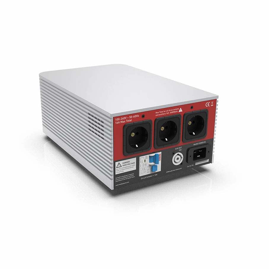 - 3 independent high current outlets for power amps, subwoofers, active loudspeakers (16A)