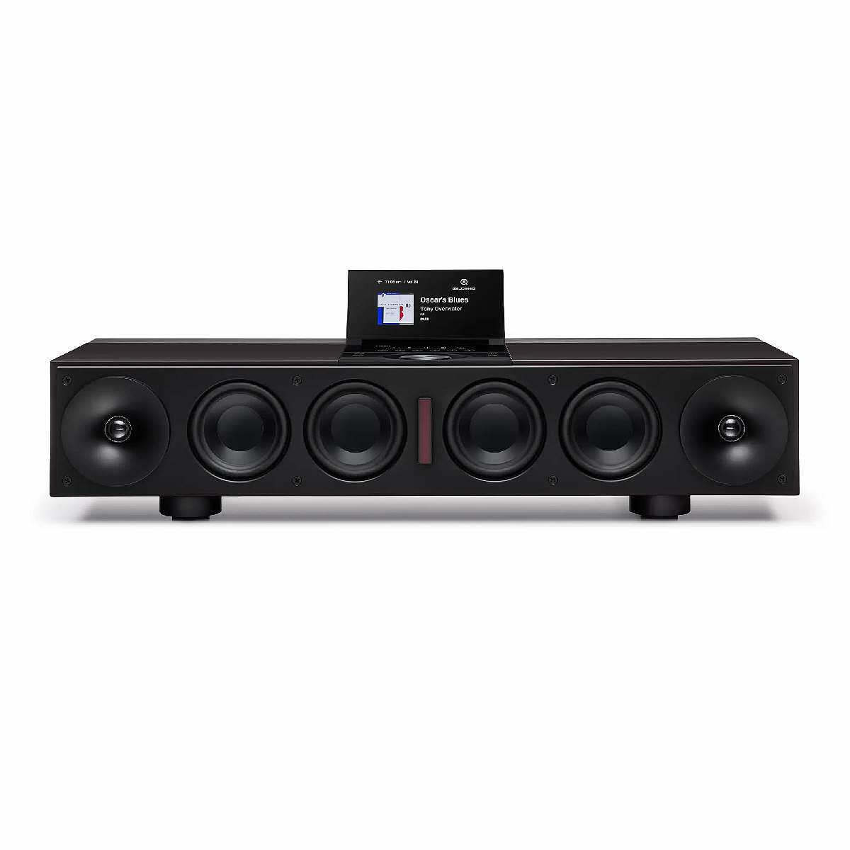 The powerful speaker array comprises six woofers (front, rear and down-firing), two mid-range drivers and two waveguide tweeters, powered by a 300-watt DSP amplifier. The result is the finest detail, enormous dynamics and a full, room-filling sound that brings music and films to life. The subwoofer output with bass management provides a rich foundation when needed. Ideal for music and cinema fans.