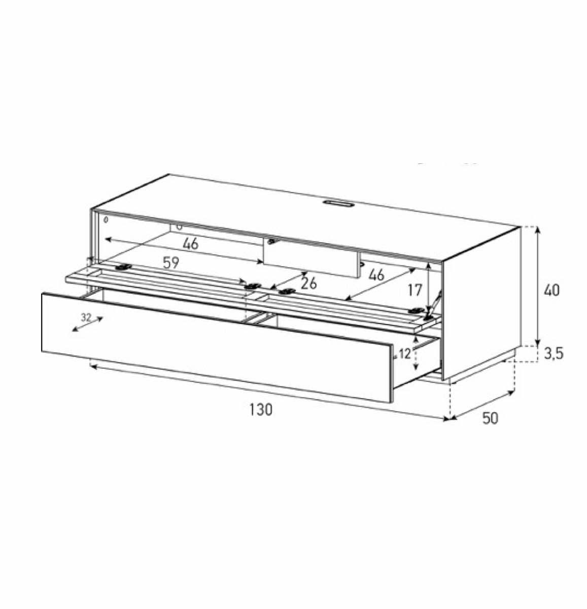 Das Sonorous EX10-TD ist ein modernes Sideboard mit Oberflächen aus verschiedenfarbigen edlen Glas- oder mit Holzfurnieren. Das Möbel ist in seinem Aufbau optimiert für die Unterbringung einer Soundbar und A/V-Geräten. Es ist entsprechend ausgestattet mit 1 stoffbespannten Klappe zur Unterbringung einer Soundbar im obigen Fach, 1 Schublade unten im Audiomöbel und mittigem Loch zur Kabeldurchführung in der Deckplatte.