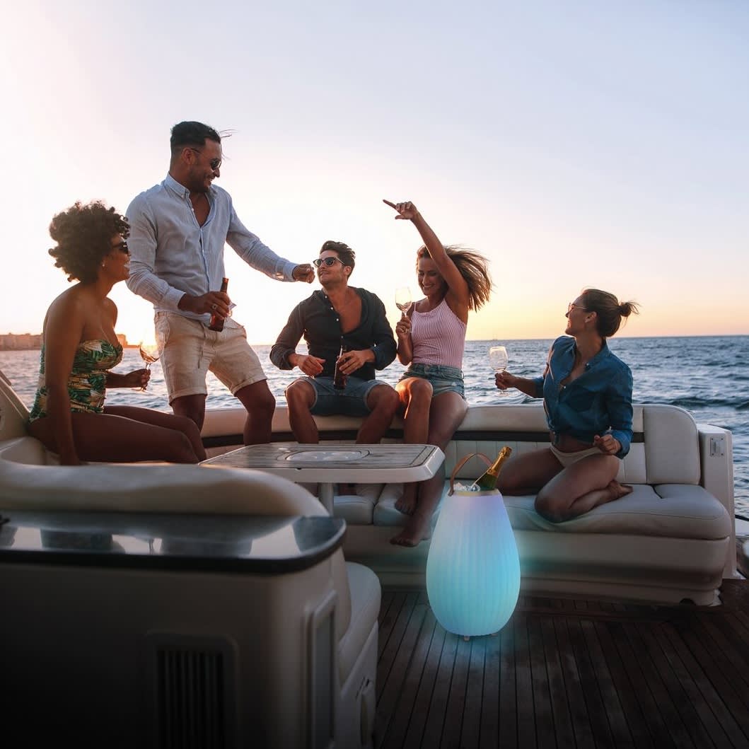 The JOOULY 50 is the eye-catcher of your summer party thanks to its multicolor LED light and Bluetooth speakers. The JOOULY 50 is an illuminated wine cooler or vase in one.