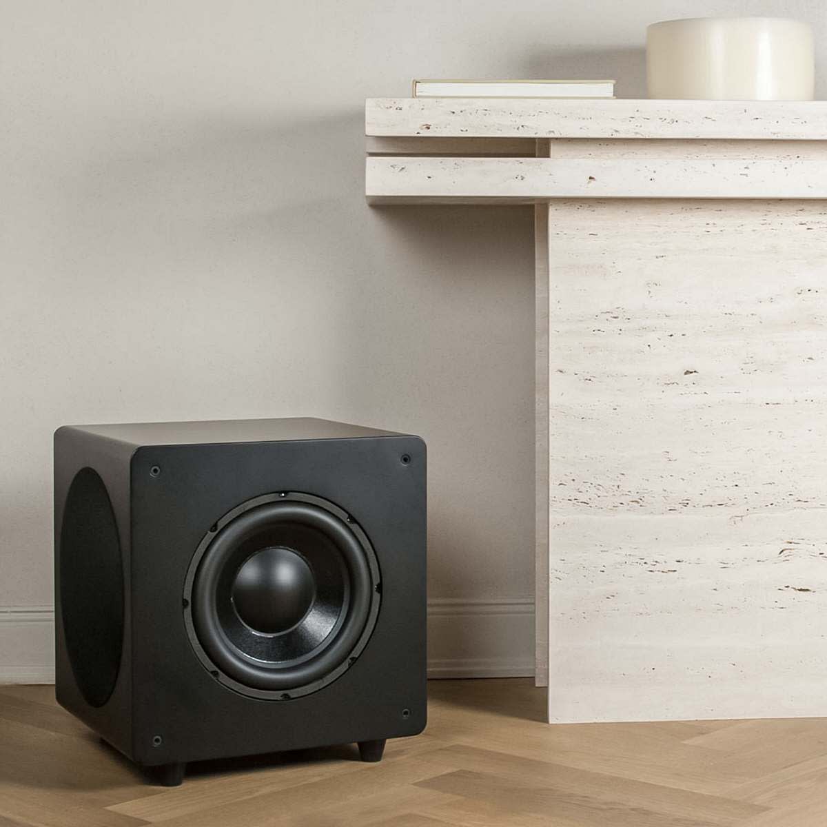 Der Velodyne Deep Waves 12 überzeugt durch sein kompaktes Boxendesign mit frontalem Hochtontreiber, zwei Passivradiatoren, MDF-Gehäuse (matt lackiert), 400W Class D Verstärker, App-gesteuerte sowie DSP-basierte, automatische Raumkorrektur.